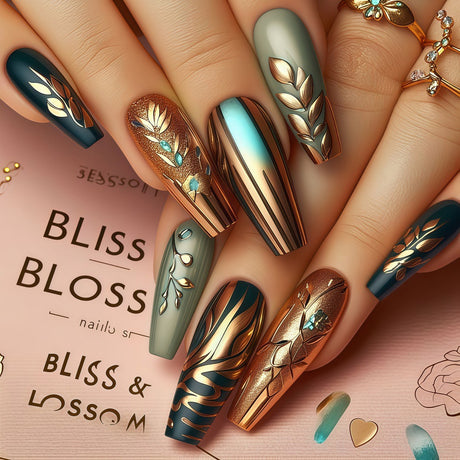 24pcs/Set 3D Gold Vintage Branch Press-On Nails