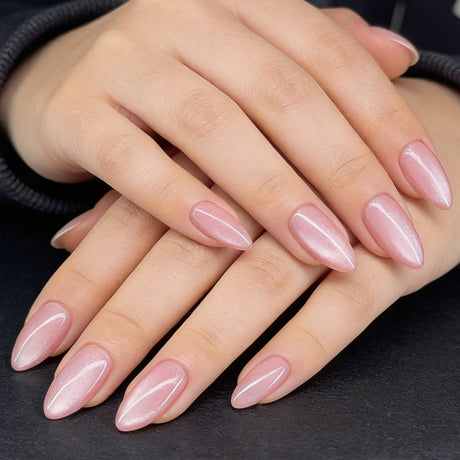 24pcs/Set Nude Pink Cat Eye Press-On Nails