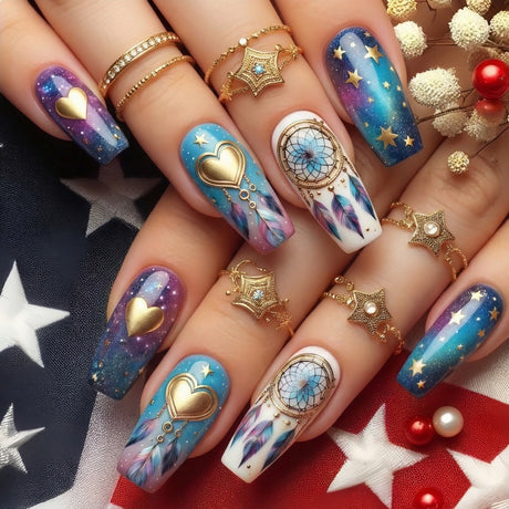 24pcs/Set Bohemian Starry Heart & Stars Press-On Nails