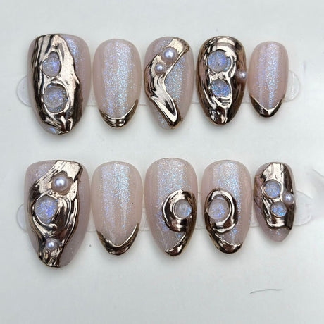(Handmade) 10pcs/Set Buccellati-Inspired French Press-On Nails
