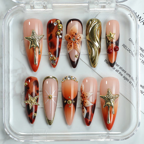 (Handmade) 10pcs/Set Ombre Star Leopard Floral Press-On Nails