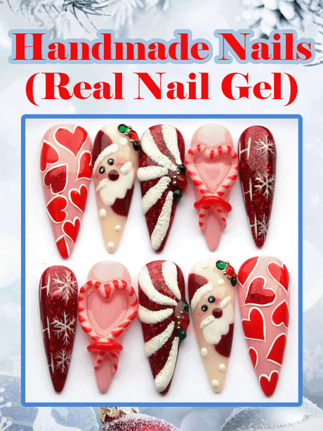 (Handmade) 10pcs/Set Christmas String Lights Press-On Nails
