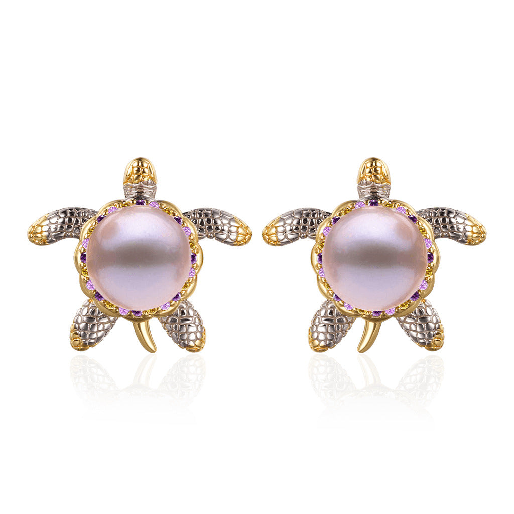 Ocean Turtle with Natural Colorful Pearl & Rhinestones Necklace