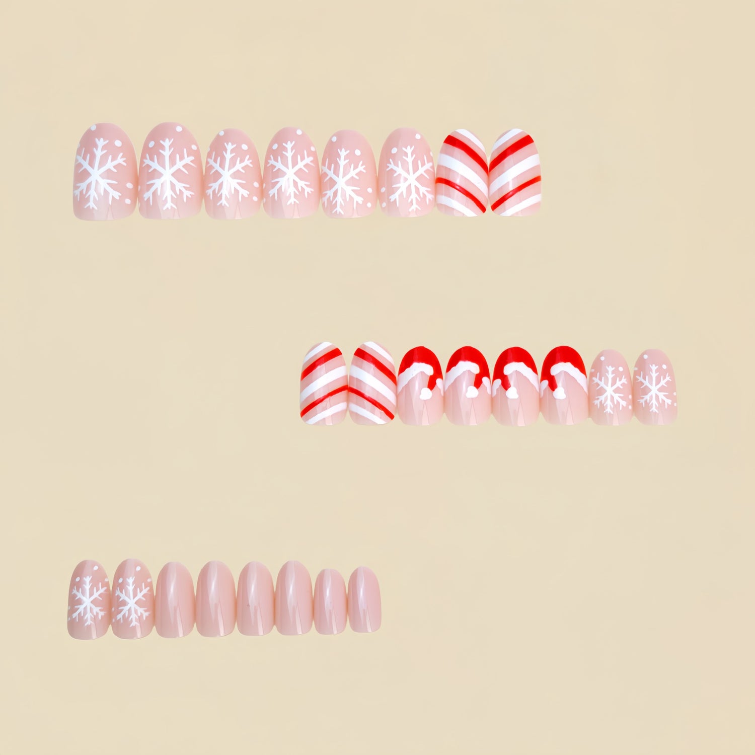 24pcs/Set Striped Snowflake Christmas Hat Press-On Nails