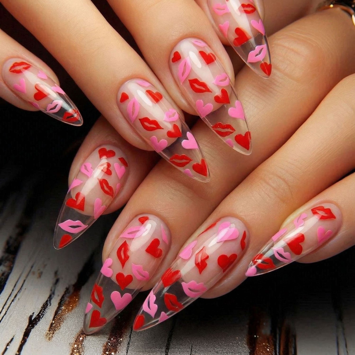 24pcs/Set Red Heart on Clear for Valentine's Press-On Nails