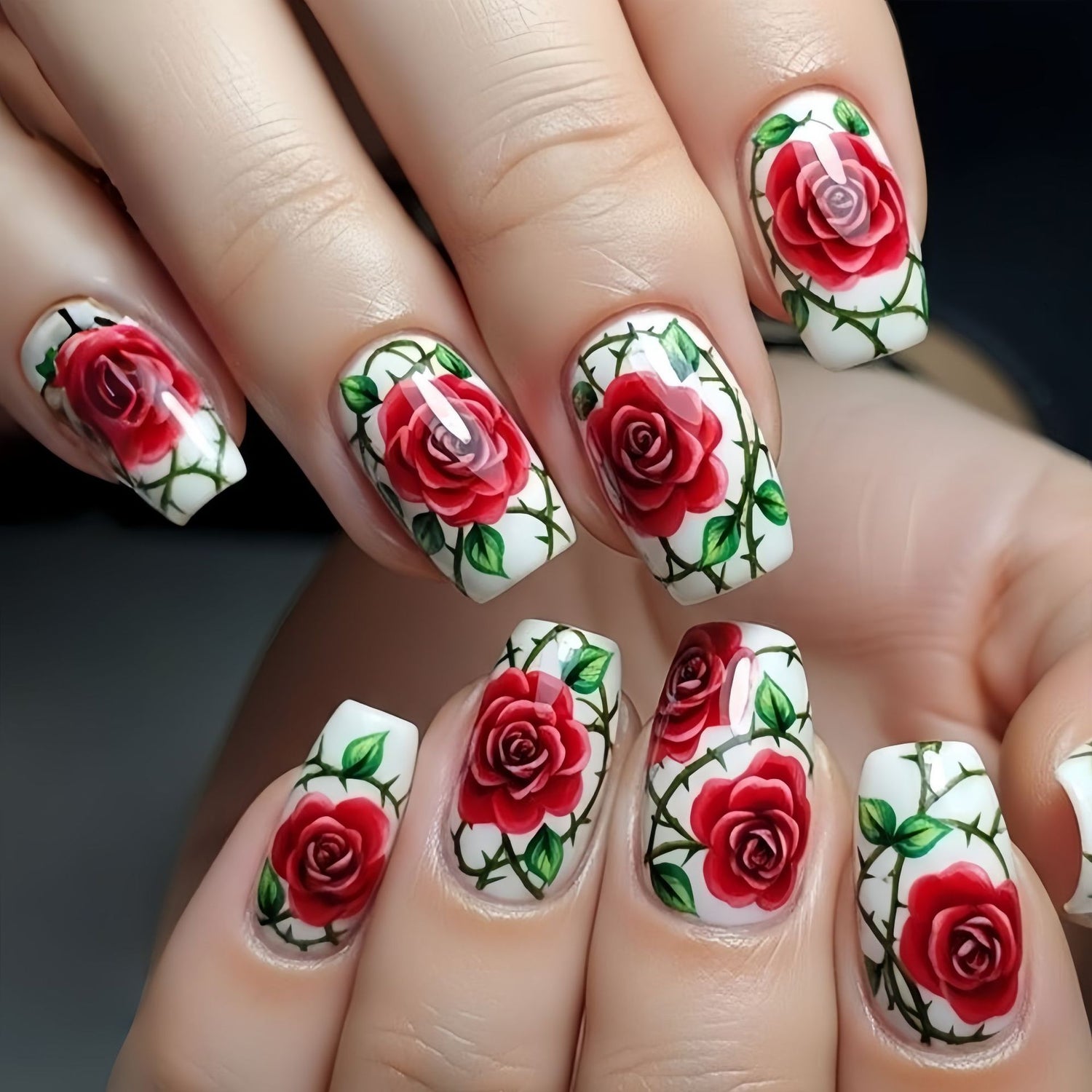 24pcs/Set Valentine's Red Rose Press-On Nails