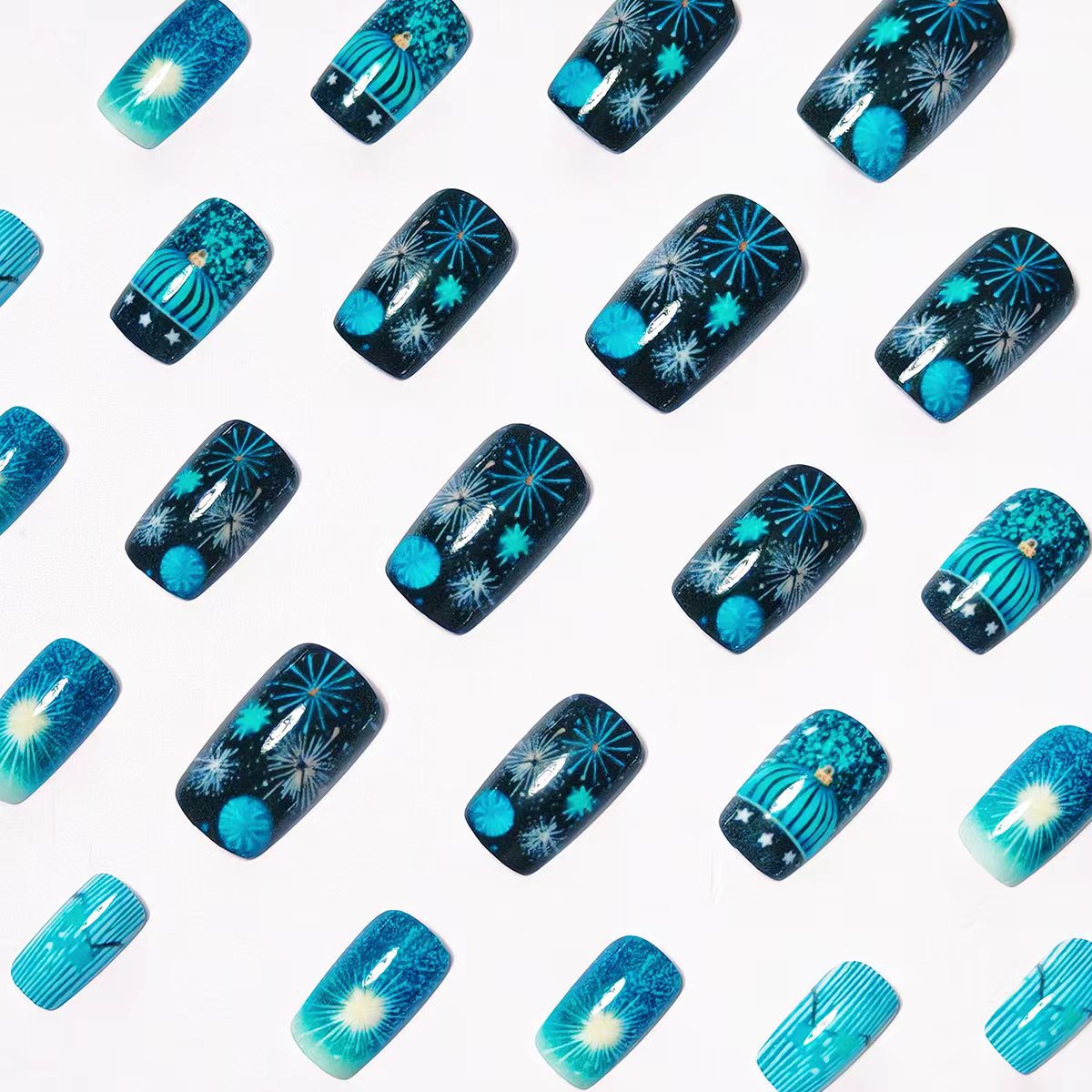 24pcs/Set New Year Multicolor Fireworks Press-On Nails