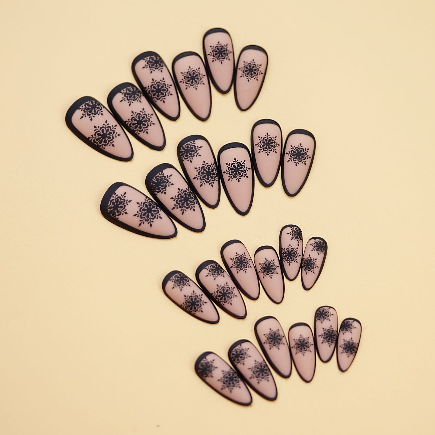24pcs/Set Black Pattern Christmas Snowflake Press-On Nails