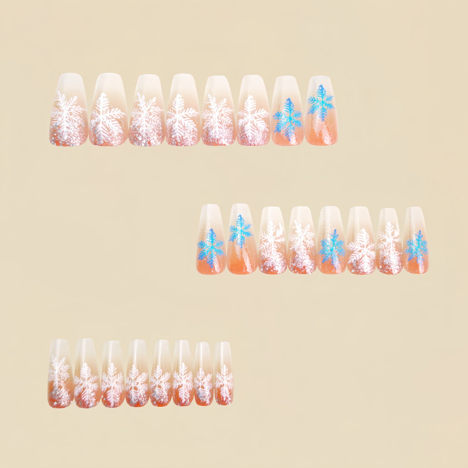 24pcs/Set Christmas Blue & White Snowflakes Press-On Nails