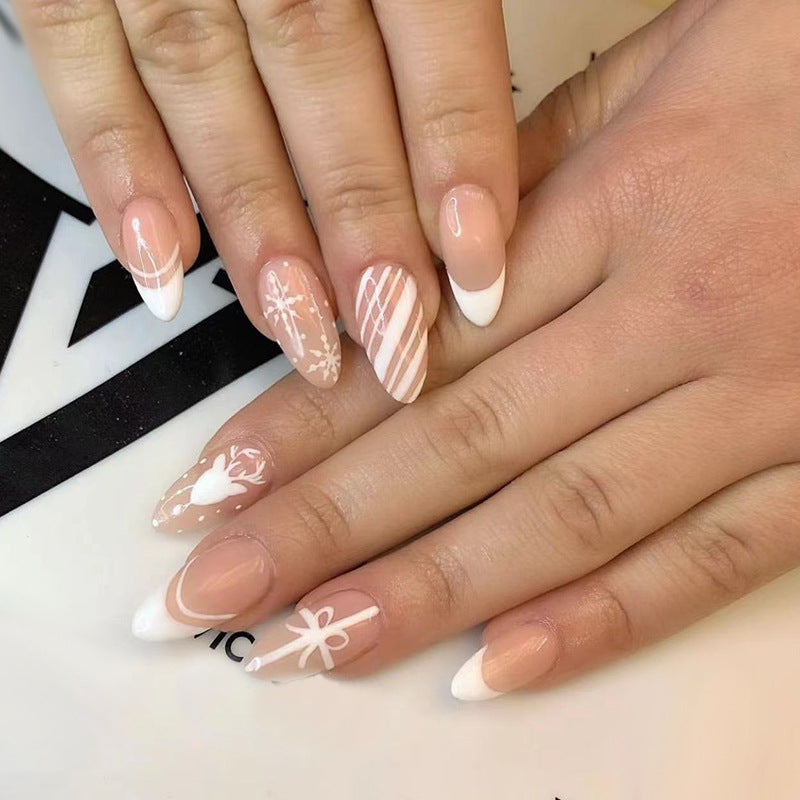 24pcs/Set Christmas Glitter Snowflake French Press-On Nails