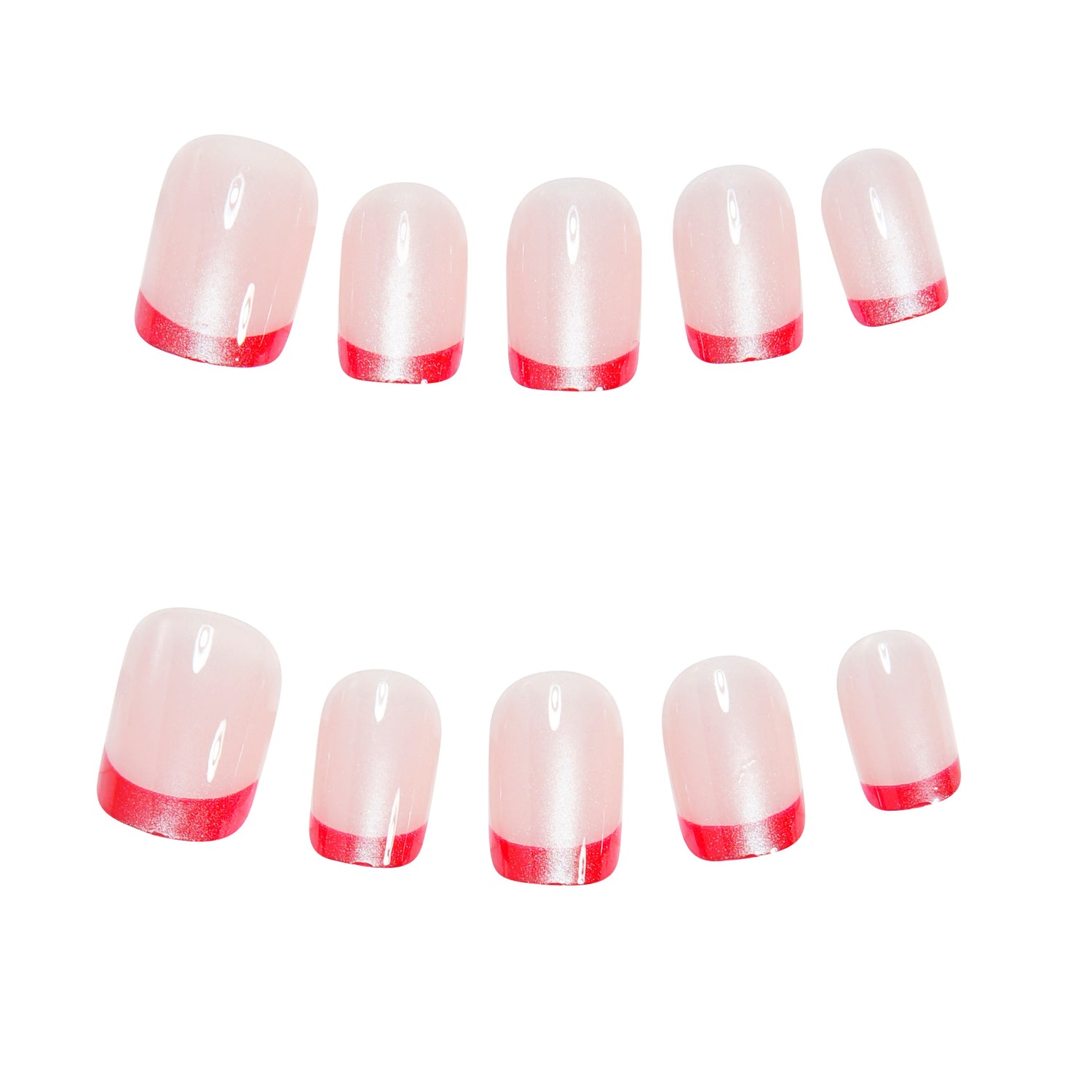 24pcs/Set Short Pink French Cat's Eye Press On Nails