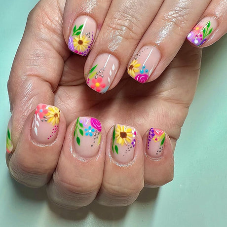 24pcs/Set Multicolor Botanical Flowers Press-On Nails