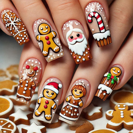 24pcs/Set Christmas Santa & 3D Gingerbread Man Press-On Nails