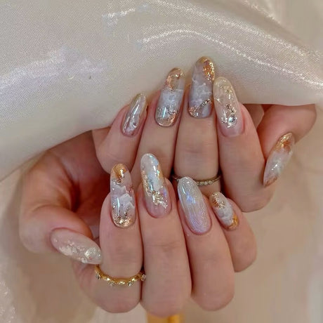 24pcs/Set Tri-Color Glaze Gold Foil Marbled Print Press-On Nails