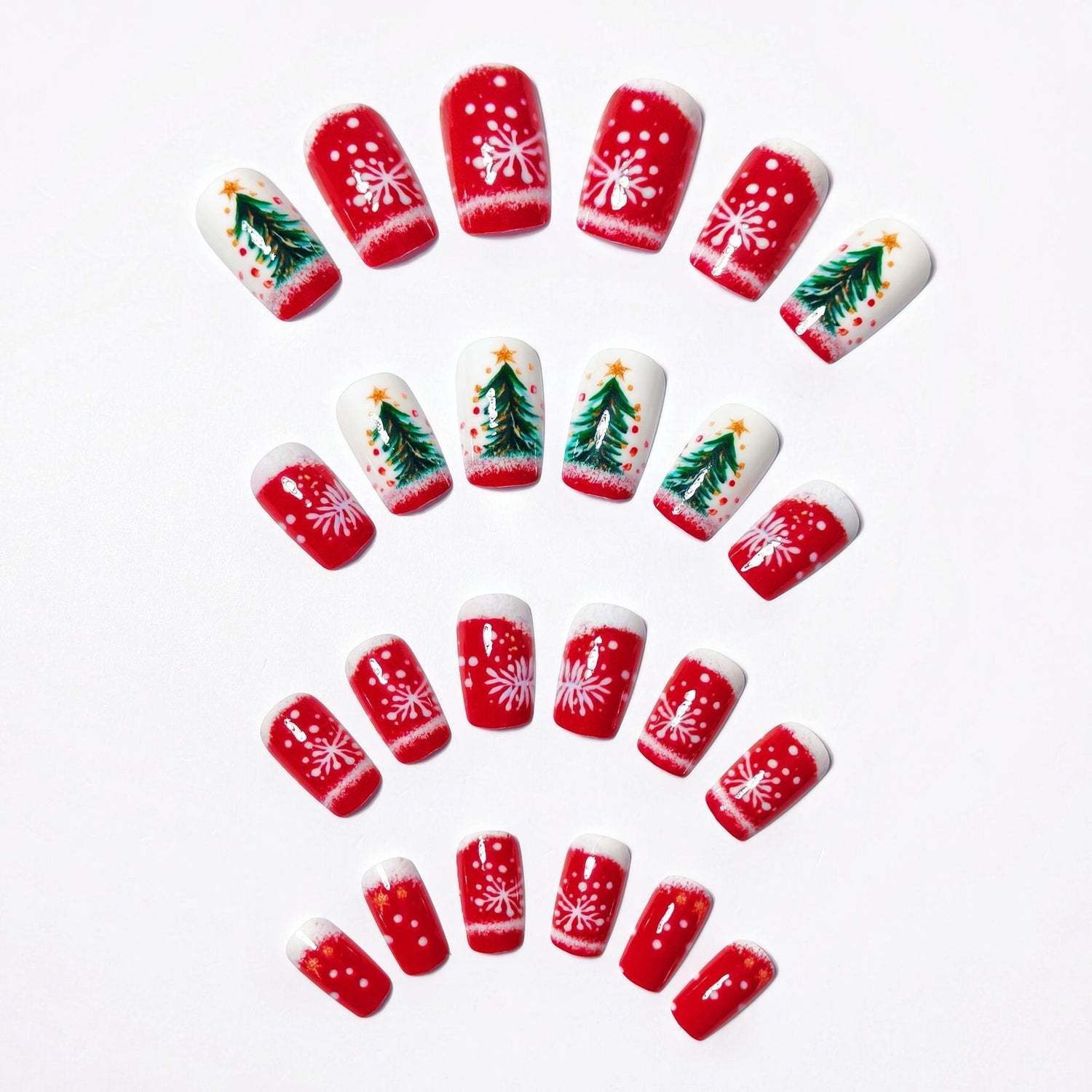 24pcs/Set White Christmas Snowflake Christmas Tree Press-On Nails