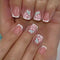 24pcs/Set Short White French with Pink & Green Flowers Press-On Nails