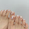 - Peel the backing from the nail and gently press onto your natural nail, center, and sides at the same time.