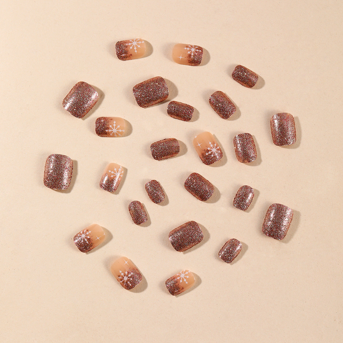 24pcs/Set Short French Christmas Snowflake & Starry Glimmer Press On Nails