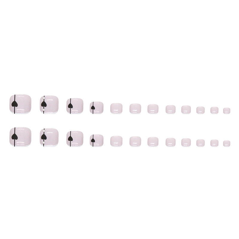 24pcs/Set Sweet & Cool Black Heart French Press On Toe Nails