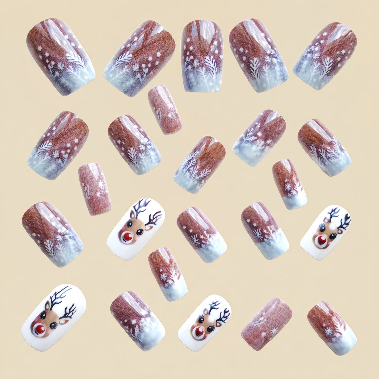 24pcs/Set Brown Reindeer Press-On Nails