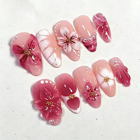 30pcs/Set 3D Cute Floral Butterfly Short Almond Press-On Nails