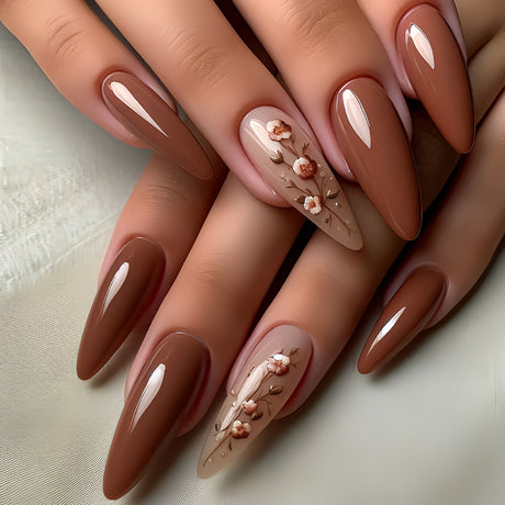 24pcs/Set Fall Winter Nut And Foliage Press-On Nails