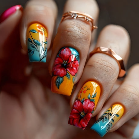 24pcs/Set Botanical Flowers Press-On Nails