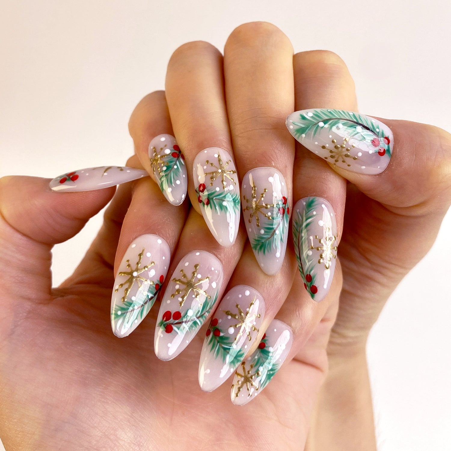 (Handmade) 10pcs/Set Gold Snowflake Christmas Tree Press-On Nails - S 15MM/11MM/12MM/11MM/9MM ...は取り寄せ中で入荷次第発送します。