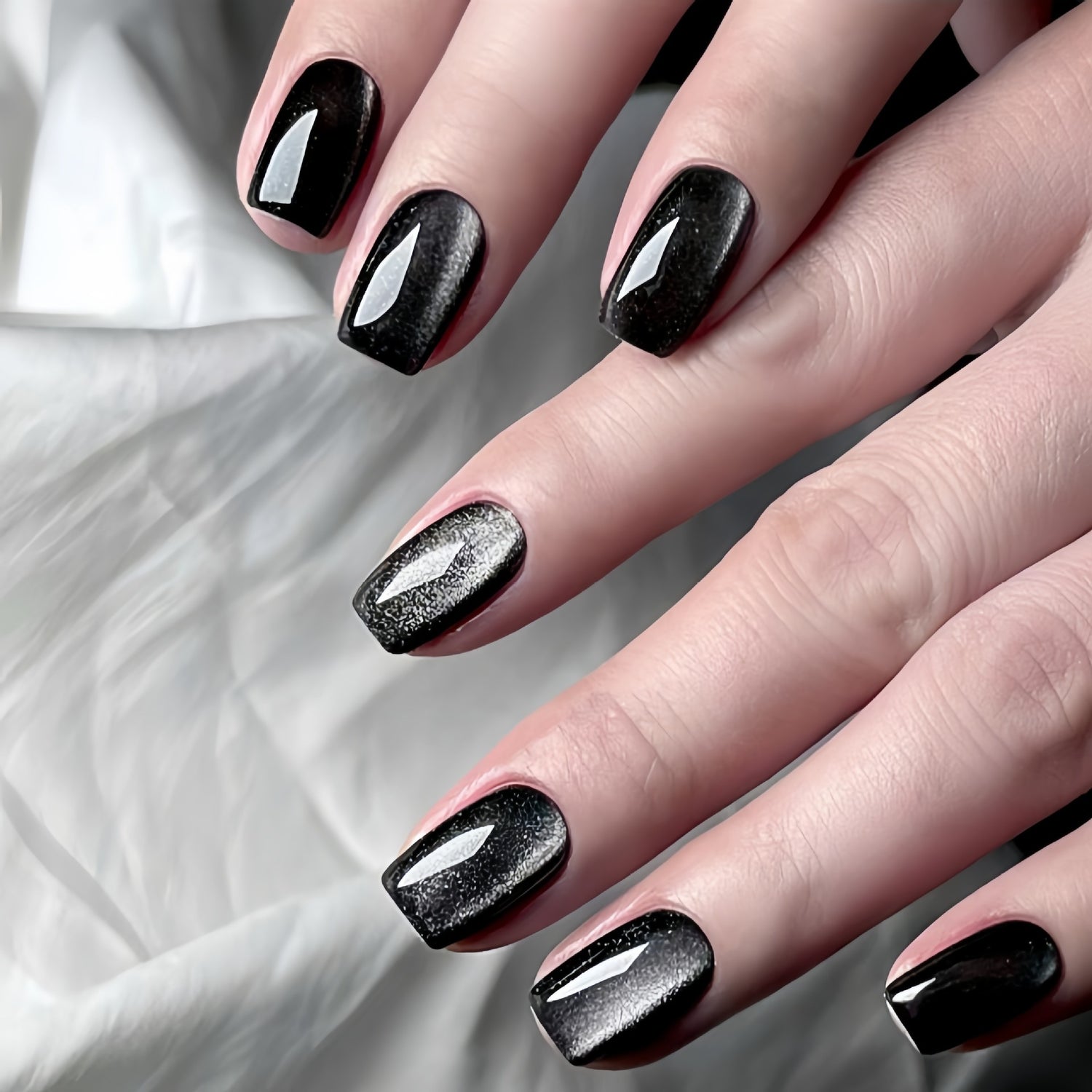 24pcs/Set Short Black Pearl Cat Eye Press-On Nails