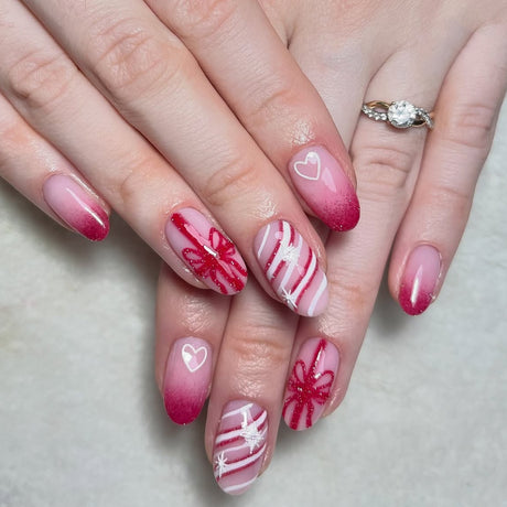 24pcs/Set Cherry Heart Bow Press-On Nails