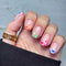 - Peel the backing from the nail and gently press onto your natural nail, center, and sides at the same time.