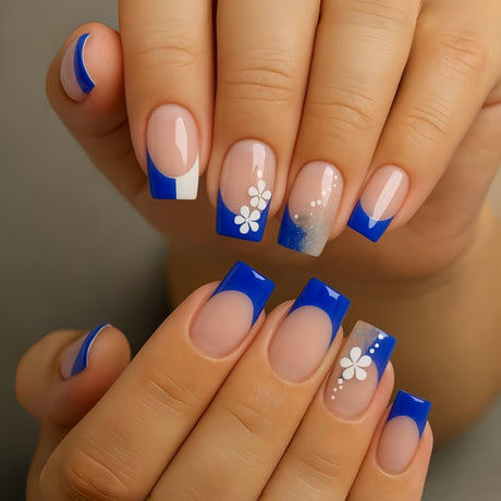 24pcs/Set Floral Gold-Trimmed French Tips Press-On Nails