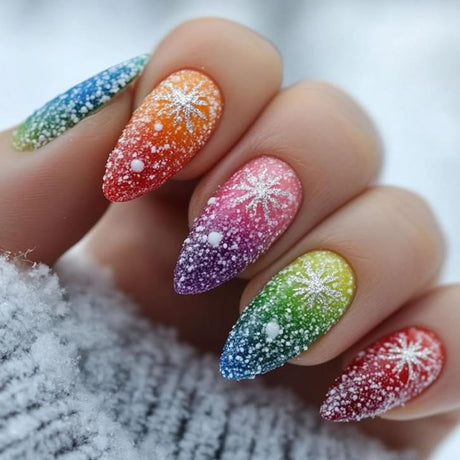 24pcs/Set Christmas Rainbow Gradient Snowflake Press-On Nails