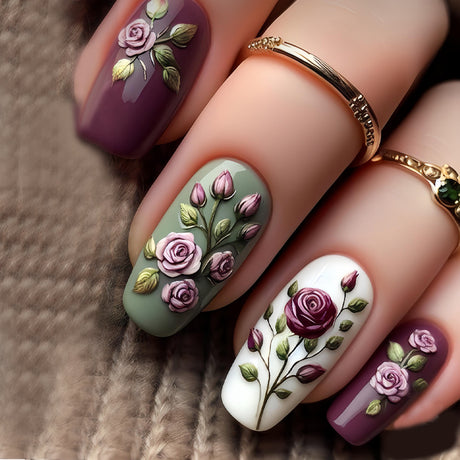 24pcs/Set Floral Glitter Polka Dots Press-On Nails